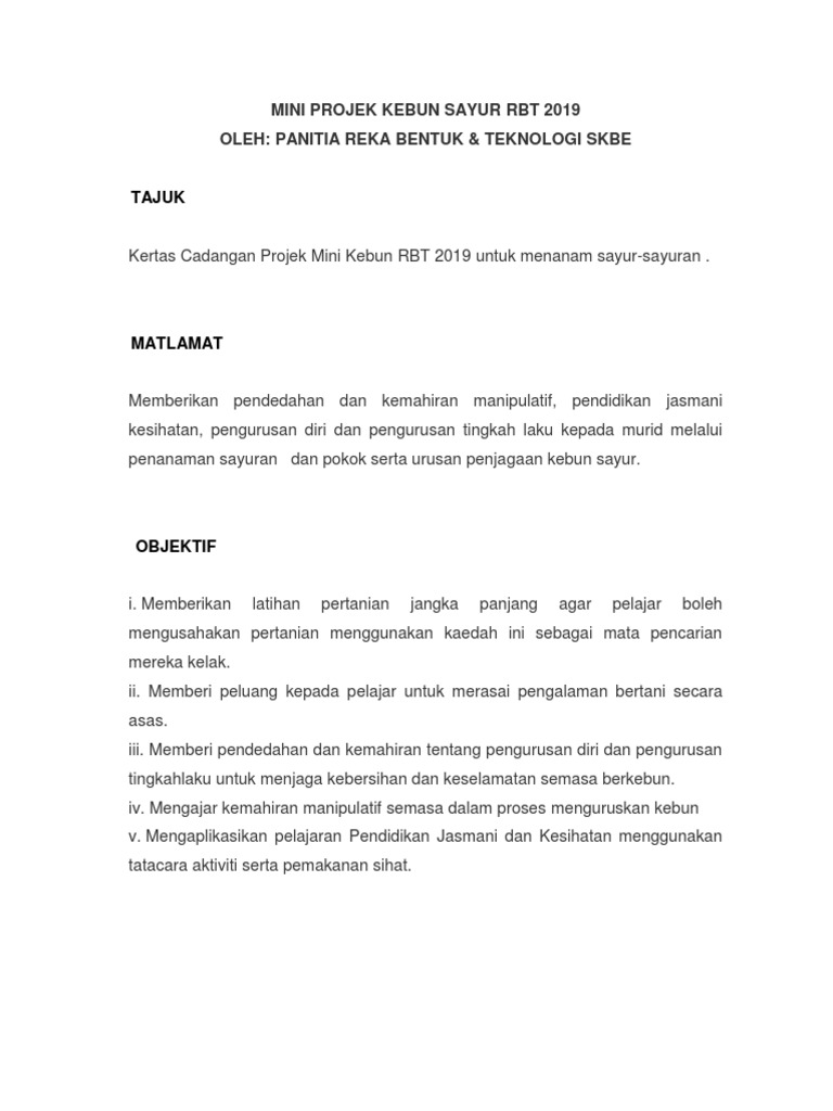 Kertas Cadangan Kebun Mini Skkg Pdf